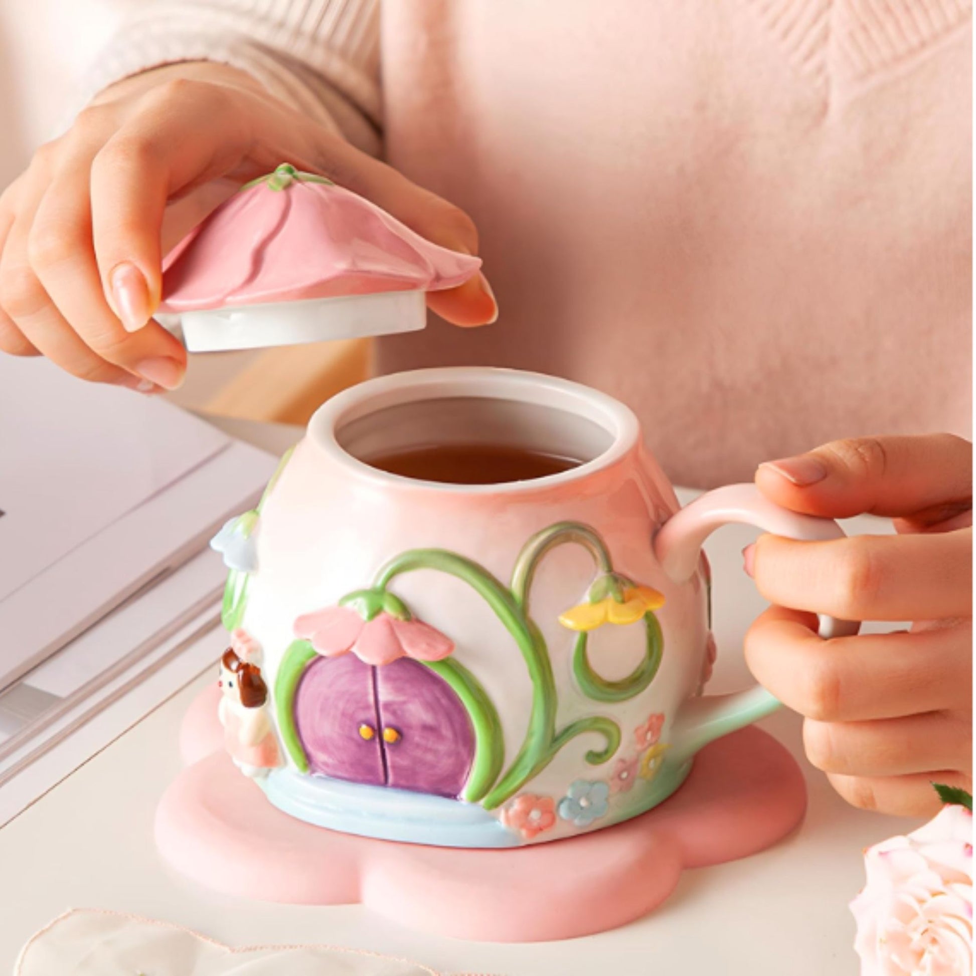 Enchanted Fairy House Ceramic Mug with Lid – Handcrafted Magical Kids Room Decor & Tableware | Look Mumma
