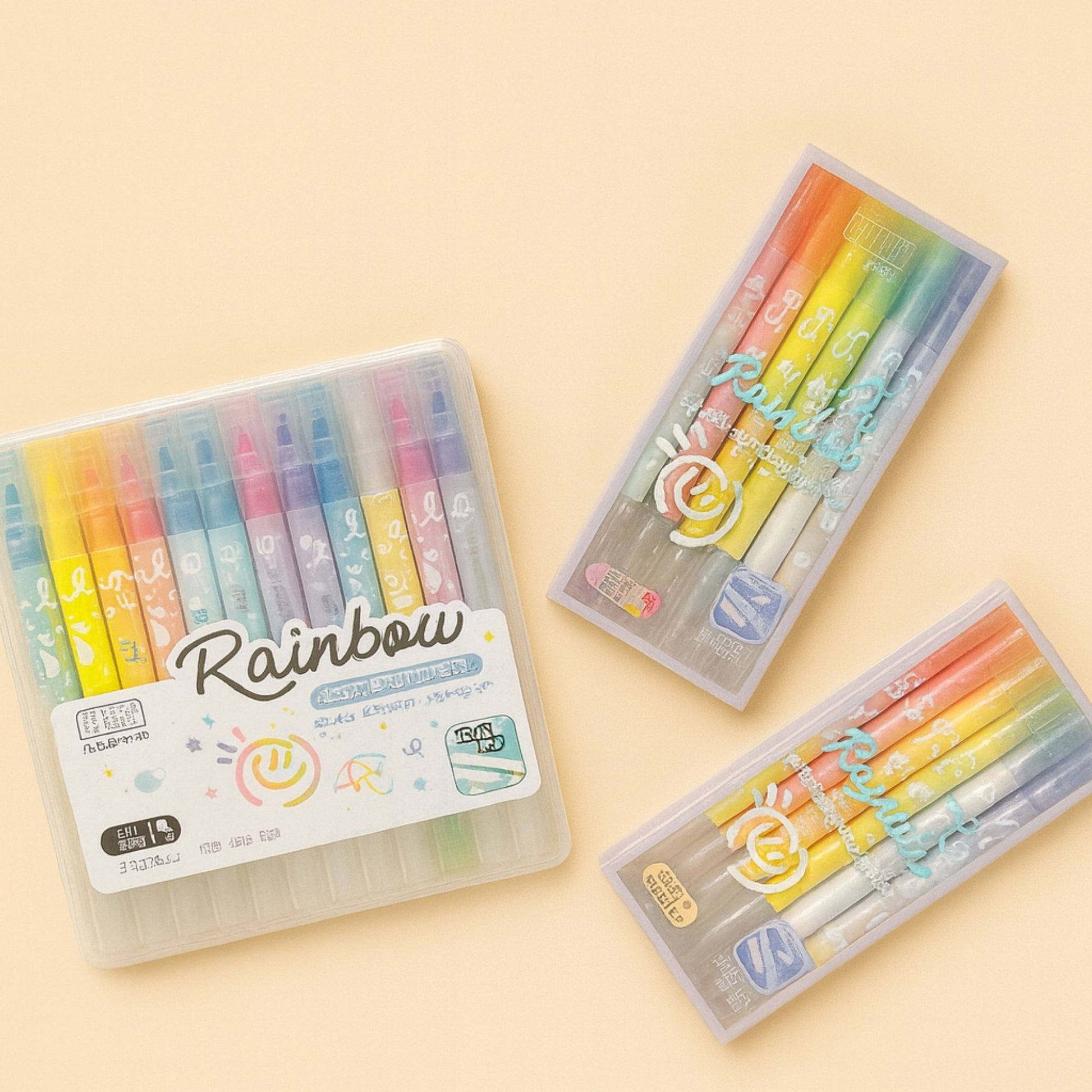 - Aesthetic Packaging: Cute, whimsical designs (like the "Rainbow" text and sun emoji) appeal to stationery lovers.